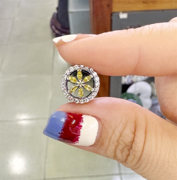 896-CHARM-Charm xỏ tròn cánh hoa nhọn đá vàng-(A189T1224)