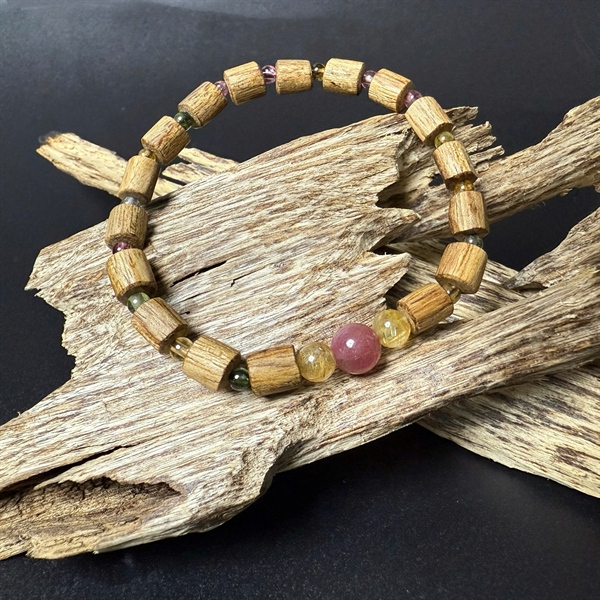 533-VDT-Vòng tay trầm khúc mix đá tourmaline-(A2T.THU.13725)